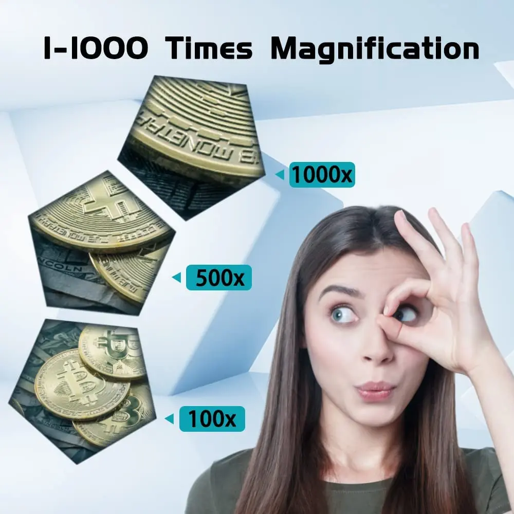 This is a continuous zoom digital microscope, and it has a wide range of observations. From 1 to 1000 times magnification, you can always find a suitable multiple to see the object.