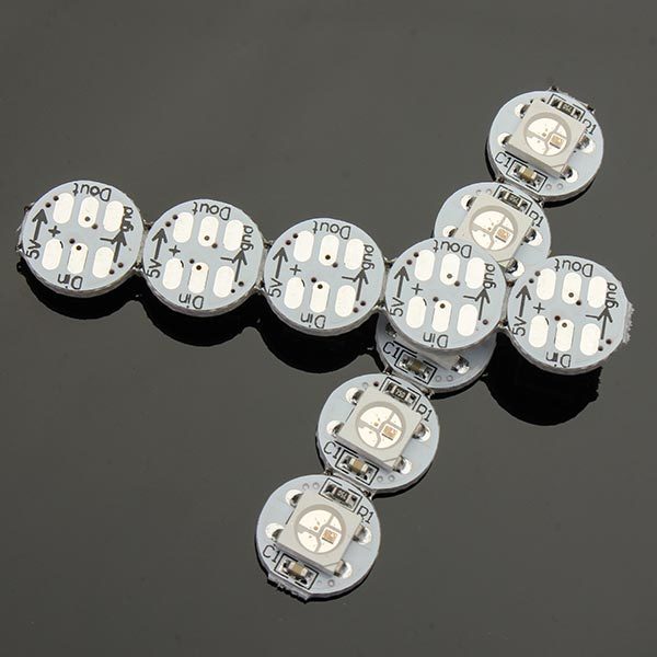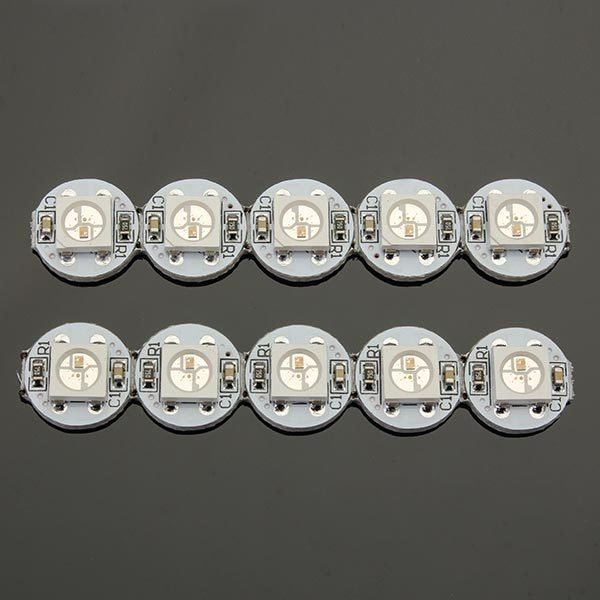 Description:Light source: 5050 RGB SMDSheet material: aluminum substrateIC models: WS2811Gray levels: 256Light Angle: 180 °Emitting light colors: can through the controller tuning for, white, red, yellow, blue, green, etcStandard working voltage: DC 5 vPower: 0.3 W + / – 0.01%Waterproof level: not waterproofThe size of the FPCB board: width: 10 mm, thickness: 3 mmPackage included:10 x WS2812B SMD LED