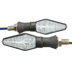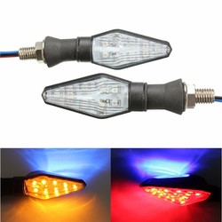12V Motorcycle 12LED 3 Colors Blinker Dual Color Turn Signal Indicator LightDescription:100% Brand new and high quality.10mm Mounting Bolt Thread.Stylish appearance and bright colors.Dual Color LightSpecification:Front Light Color: Red / Amber / Blue (Pls select the color you require.)Back Light Color: BlueLED Quantity: 12 LED (Front: 9 LED, Back: 3 LED)Voltage: DC 12VPower: 1WCurrent: 300mAQuantity: 2 piecesMaterial: ABS PlasticCompatibility: UniversalNote:1. A resistor or a flash will be needed to make sure this item work properly.2. Red wire connects to the “+”(turn signal light); black wire connects to the “-“; blue wire connects to the driving lamp or stop lamp.Package Included:2 x Motorcycle Turn Signal Lights