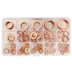 Description:150Pcs Solid Copper Washers Sump Plug Assorted Washer Set Plastic Box 15 SizesSpecifications:Material: CopperSize types: 15Quantity: 150 PcsBox size: approx. 130x68x22mmSize: (I/D x O/D x Depth)
