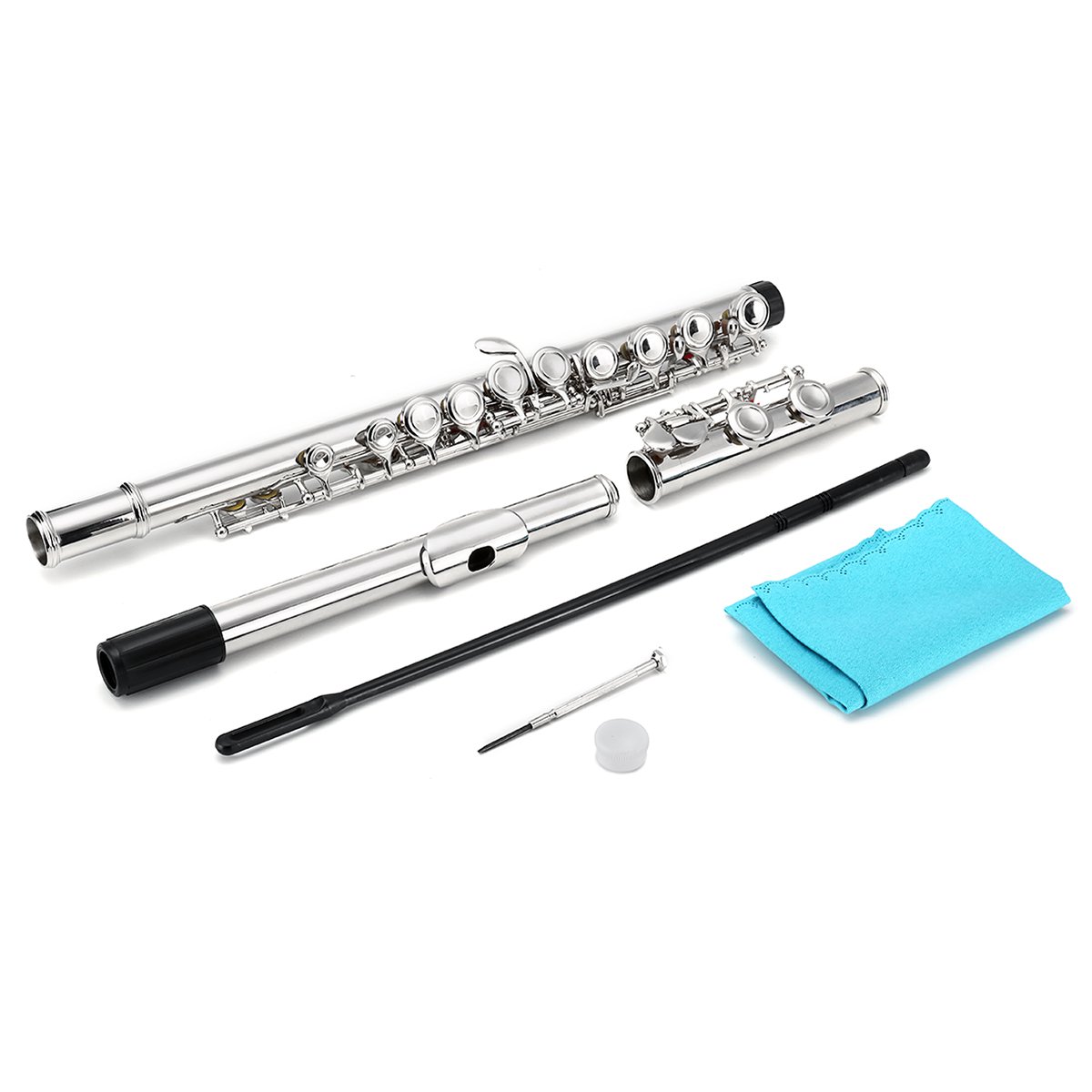 -Closed 16 hole flute with range to C. Nickel/Silver plated head, body, foot and keys by advanced plating process ensuring longivity of the flute.