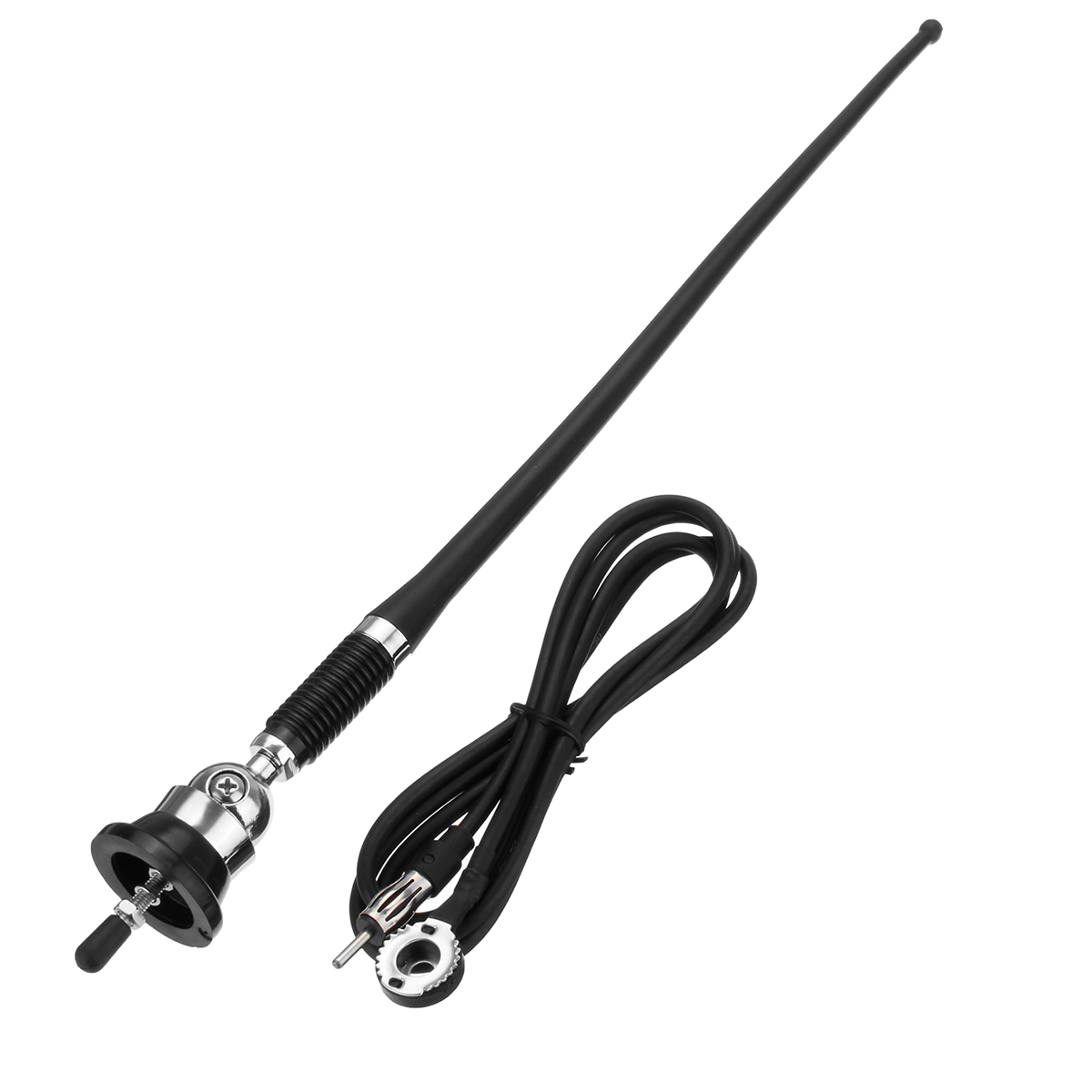 Feature:It can be mounted on the roof or fenders of the car.With 180 degree swivel base.With it, we can have great signal reception as well.It is easily to mount in variety of locations.It can deliver great AM/FM stereo reception.16 inches antenna and 50 inches antenna extension cable included.Fitment:Universal car auto roof radio AM / FM antenna fit for most cars.Specification:Color: BlackMaterial: RubberType: Spring Soft RodAntenna Type: Roof AerialDevice Type: Car radio AM-FM antennaMW: 525KHz-1605KHzFM: 76-108MHzTotal length: 43±1cm / 16.9inch±0.39inchCable Length: Approx. 136cm/53.54 ftAntenna Length: Approx. 36cm/ 14.17inchRotation angle: 0-180 Degree (adjustable)Feature: With 180 degree swivel base, Amplify SignalApplies to: automotive and other FM signal reception, increase the reception distance, enhanced sensitivity of weak signals.Package Included:1 X Car Radio AM-FM Antenna1 X Antenna Extension Cable