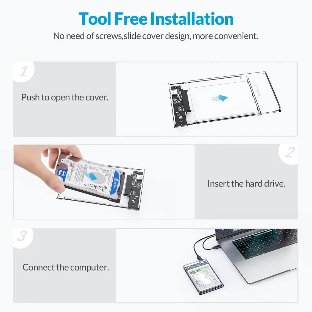 - It’s a high-quality clear SSD / HDD enclosure designed and manufactured by ORICO. You can see the internal structure and hard drive status at a glance.