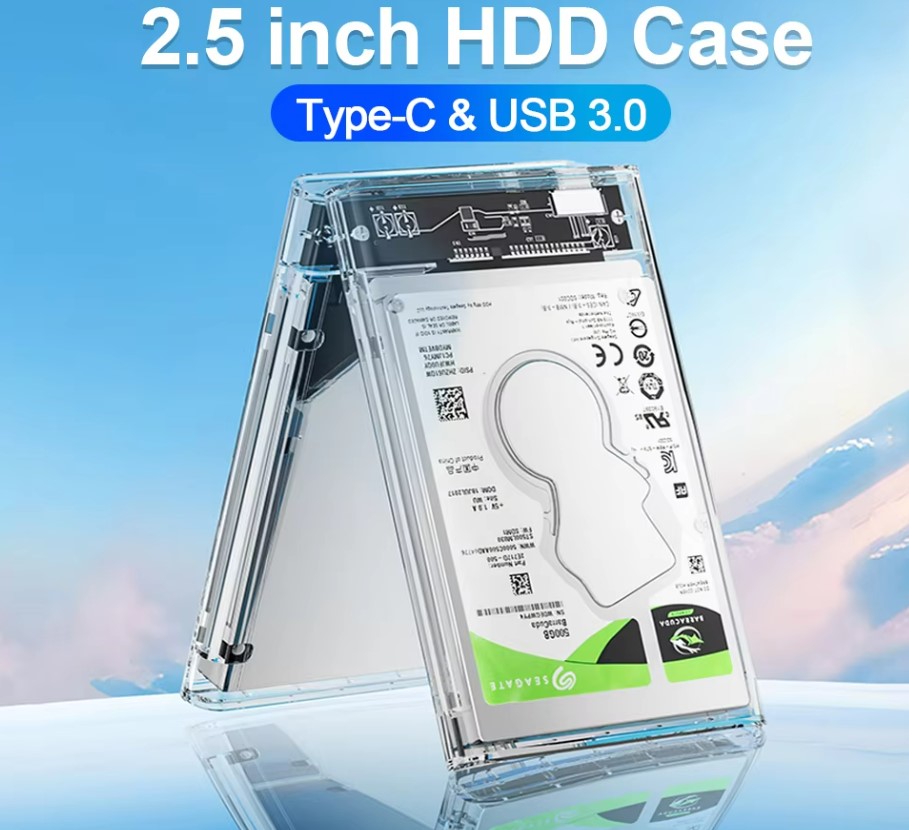 Easily expand your storage with the 2.5-Inch HDD Case SSD Enclosure, designed to fit 2.5-inch SATA HDDs and SSDs. This transparent enclosure allows you to see the drive inside, adding a sleek look to your setup. With USB 3.0 connectivity, you can enjoy transfer speeds up to 5Gbps, perfect for fast backups, data migration, and media access. The tool-free design enables quick installation, making it a hassle-free solution for anyone needing extra storage for PCs, laptops, or gaming consoles.