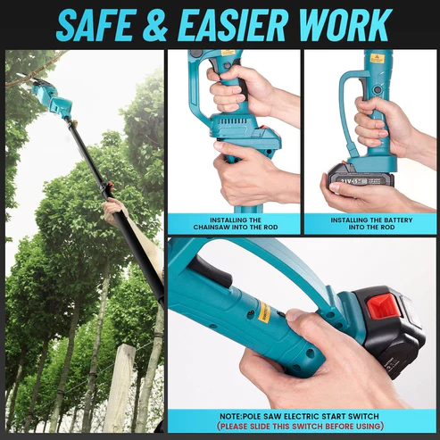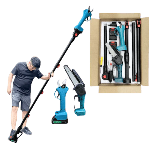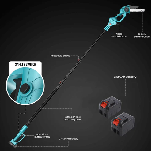 Experience the ultimate versatility with our 2-in-1 Cordless 8-inch Chainsaw with Pole Saw. Perfect for tackling any outdoor project, this powerhouse tool combines convenience and performance like never before. Trim branches with precision using the pole saw, then effortlessly switch to the chainsaw for ground-level tasks. With cordless freedom and an 8-inch blade, no job is too tough. Elevate your outdoor maintenance game with our 2-in-1 Chainsaw and Pole Saw – where convenience meets cutting-edge performance, branch by branch.