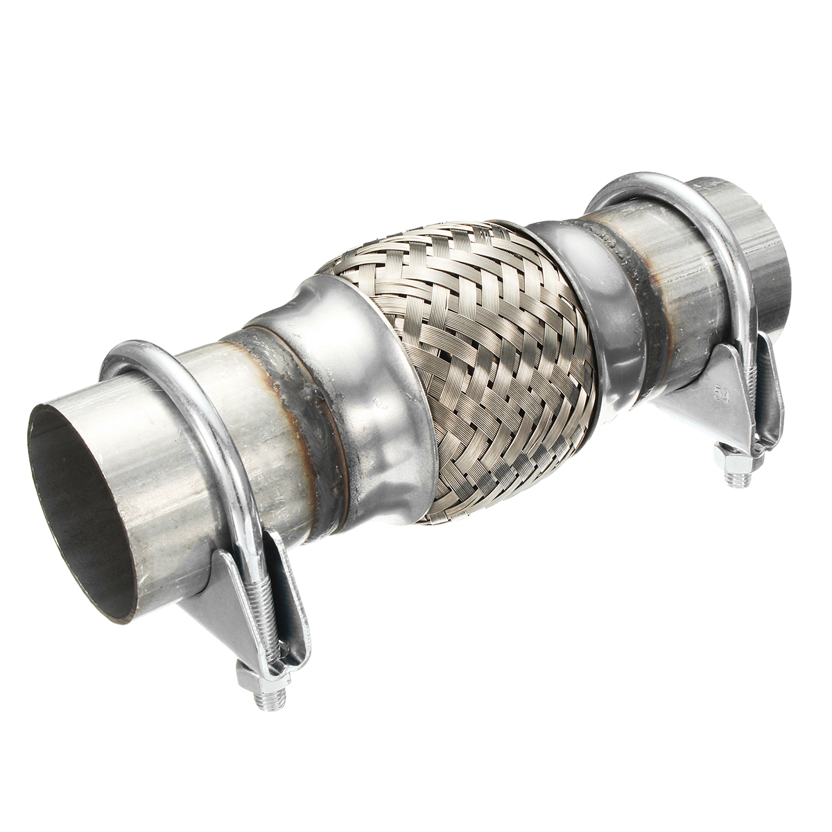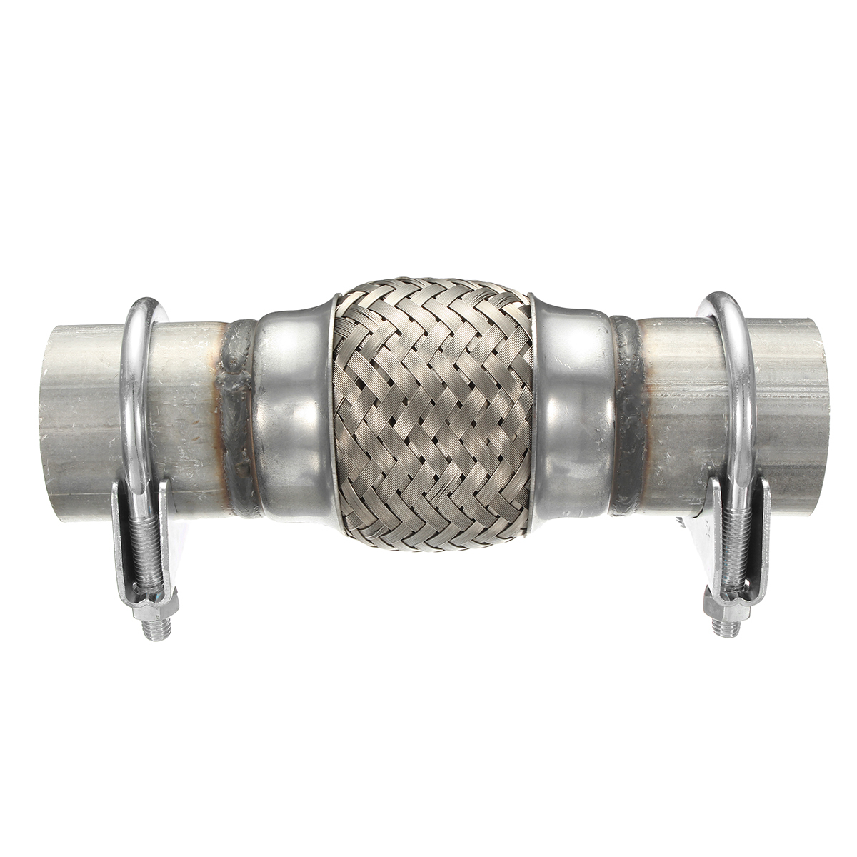 Feature:1.This universal replacement flexi can withstand temperatures in excess of 1100 degrees.2.Stainless Steel Flex with Aluminized Collars.3.Standard Lining for Noise Reduction.4.This flex replaces a blowing or damaged flex on your exhaust.5.This flex can be used in your custom built system to reduce wear from engine vibrationand to make sure your pipe lines up with the manifold correctly.Specification: