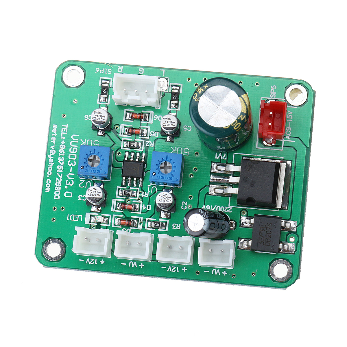 4. Header interface: pay attention to positive and negative.5. R1 and R2 are two adjustable resistors on the drive plate that can control the size of the stylus swing.VU Meter:Color: BlackMetarial: PlasticSize: 35 x 35 x 37mmMeasuring range: 0–500UA ± 10%Resistance: 650Ω ± 10%Accuracy: ± 5%Approved location: Full-scale 500UABacklight voltage: AC/DC 6-12V