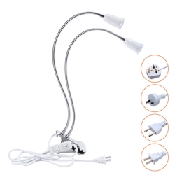 Specification:Plug type: US/EU/UK/AUBulb base: E27Color: whiteMaterial: iron & plasticTube length: 20cmCable length: 1.8m Feature:US/EU/UK/AU plug can be directly connected or replacement with light bulbsWith dual control On / Off switch360° adjustable lamp holder ,you can change the bulb’s lighting angle and height as your need.Light weight, easy to installPackage included:1*E27 double head lamp clip(without bulbs)