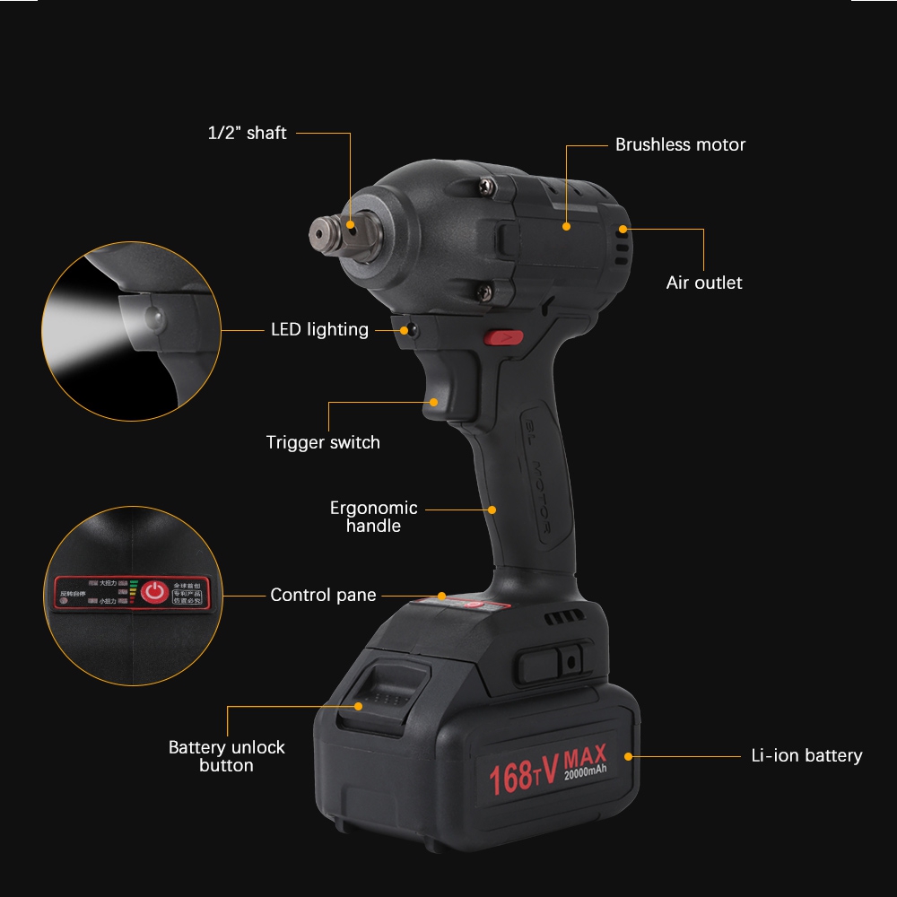 – Brushless and reliable motor, delivers 380N.m of maximum torque, effectively improve the efficiency of your work