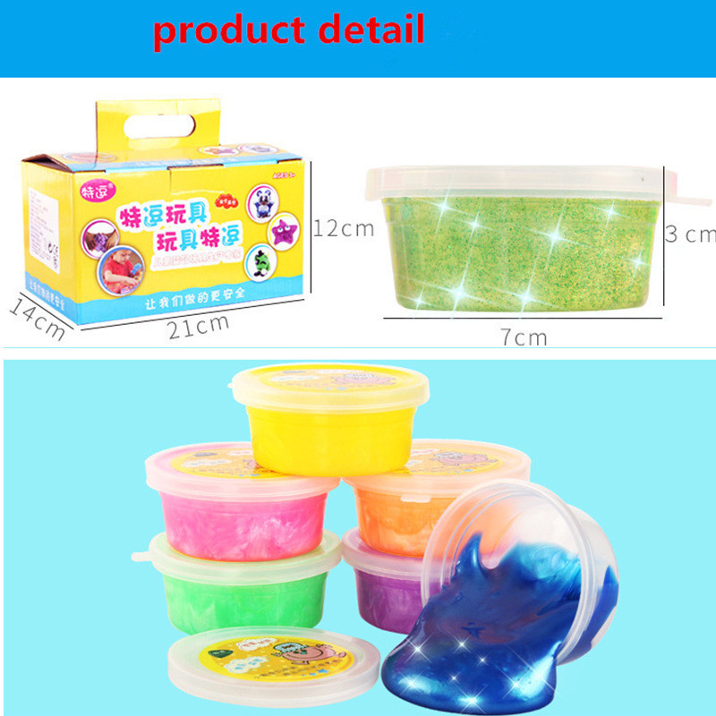 DescriptionItem name:Colorful bounce mudMaterial: plasticType: color mudColor: 24 colorsWeight:Each tank about 55g; rubber mud:50gSize: 7 * 3CMSpecifications: 24 color suitPacking: color box (14 * 21 * 12CM) Features:● Strong ductility, soft, good plasticity.● Bright colors.● Long-term preservation, finished products can be kept preserved● Contribute to the children’s intellectual development, hands-on, interest training and other capabilitie.● Environmental non-toxic magic and more interesting● Parent-child communication. Warning: 1.wash hands after playing2.Please keep away from children under 3.3.This material kit can’t be ate,please be accompanied by parents Warning:1. As the weather is hot, the road is far away, when you receive the clay do not rush to open, you can first put it in the refrigerator for 20-30 minutes (or put two or two drops of borax water to the clay, you can immediately play)2. If you accidentally drop the clay on the clothes, you can first clean up, and then put a little toothpaste in the clothing, wipe with a wet towel off. Package include:● 24 x clay
