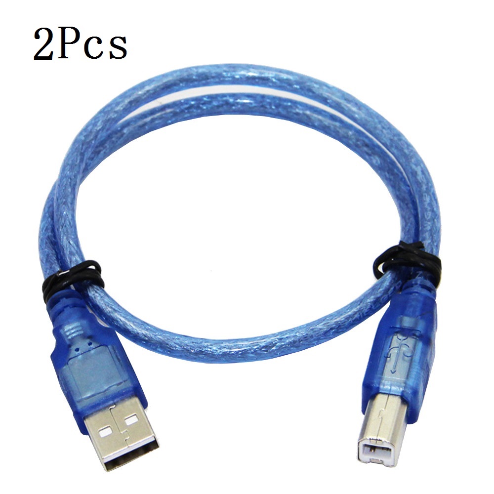 2Pcs 30CM Blue USB 2.0 Type A Male to Type B Male Power Data Transmission Cable For UNO R3 MEGA 2560