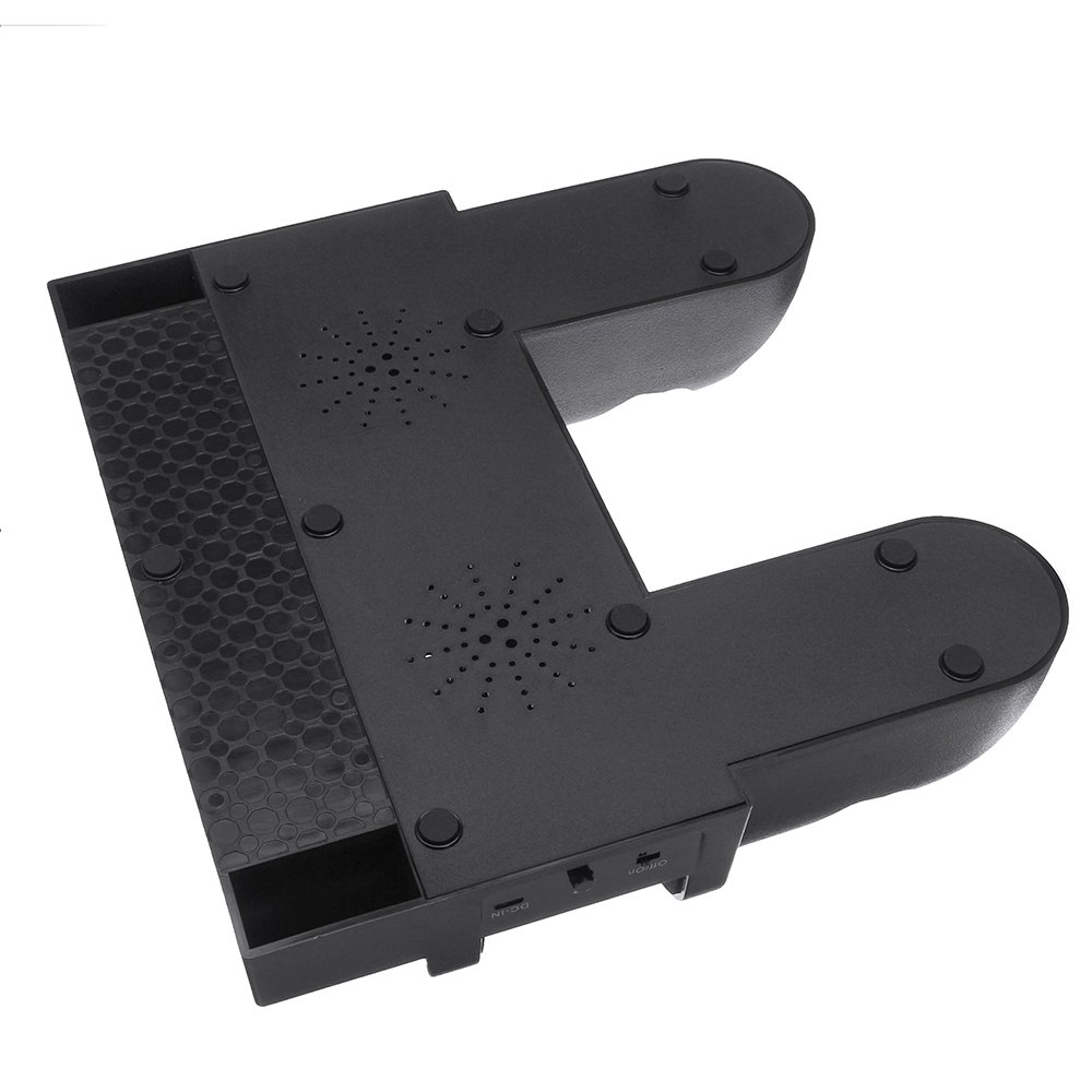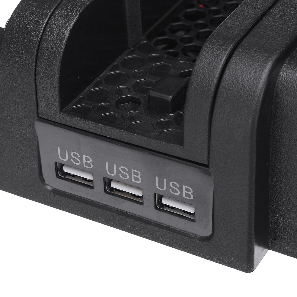 All-In-One: vertical stand + cooling fan + controller charging station + LED Switch button + 12 games storage + 3 USB ports + EVA pad+USB cable
