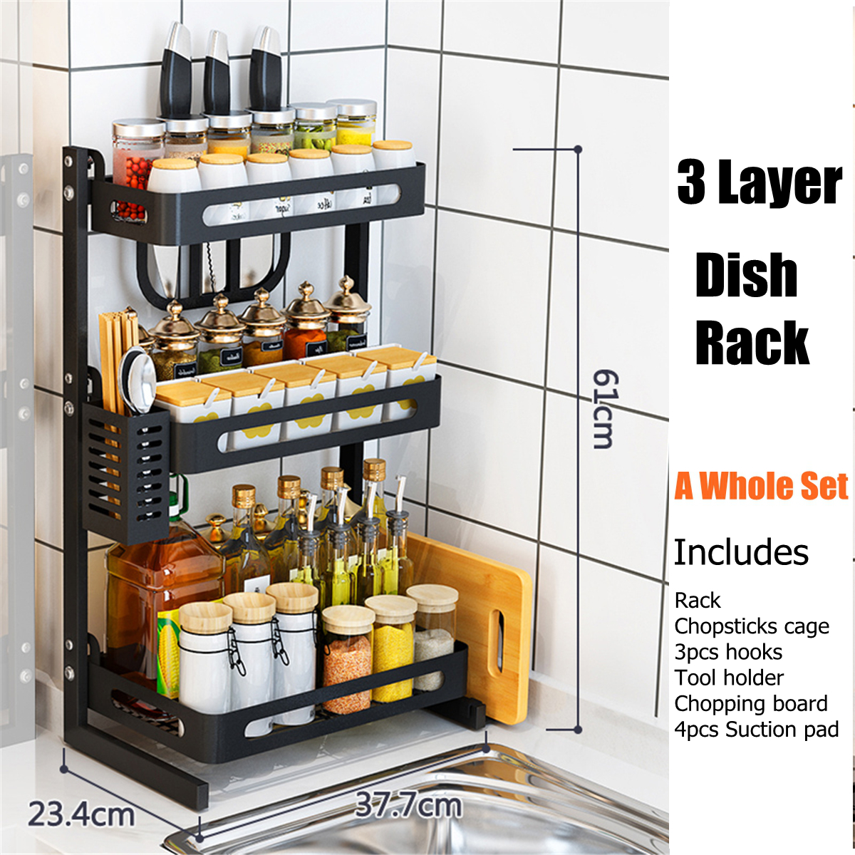 Stainless Steel Cup Dish Rack Cutlery Dryer Drainer Holder Spice Bottle Organizer For Kitchen
