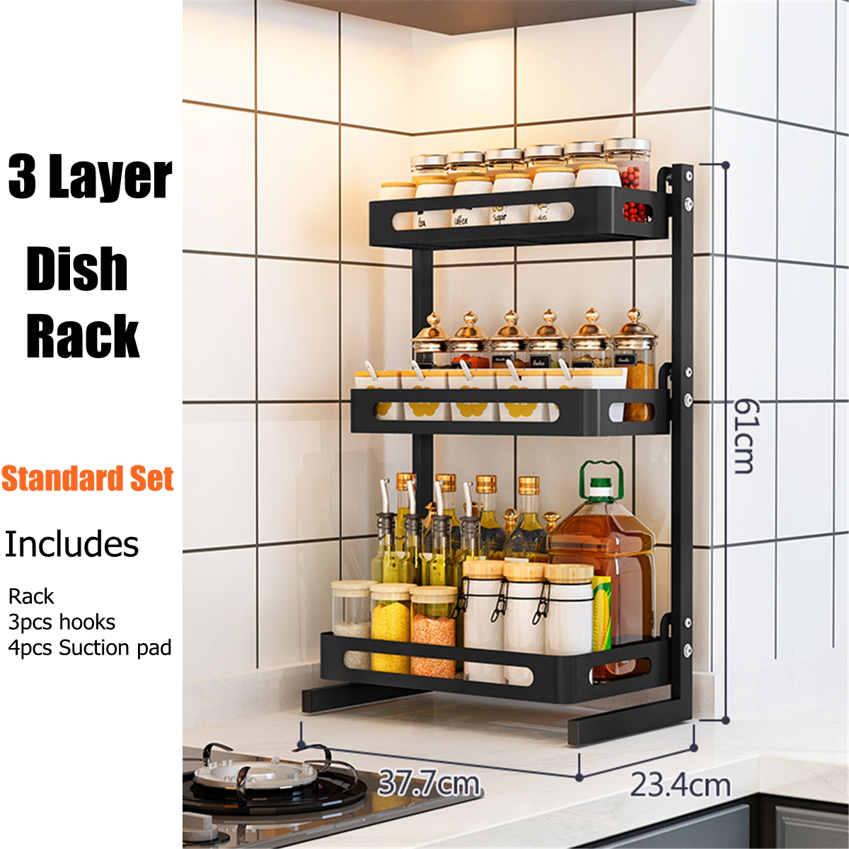 3 Tier Stainless Steel Storage Rack Countertop Spice Jars Bottle Shelf Kitchen Spice Rack 4