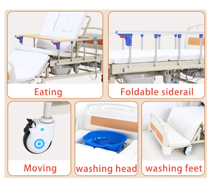 Upgrade patient care and comfort with our 5-function Electric Patient Hospital Bed. Designed for hospitals, nursing homes, and home care settings, this advanced medical bed offers multiple functions, manual controls, and a built-in toilet, ensuring convenience and superior care for patients.