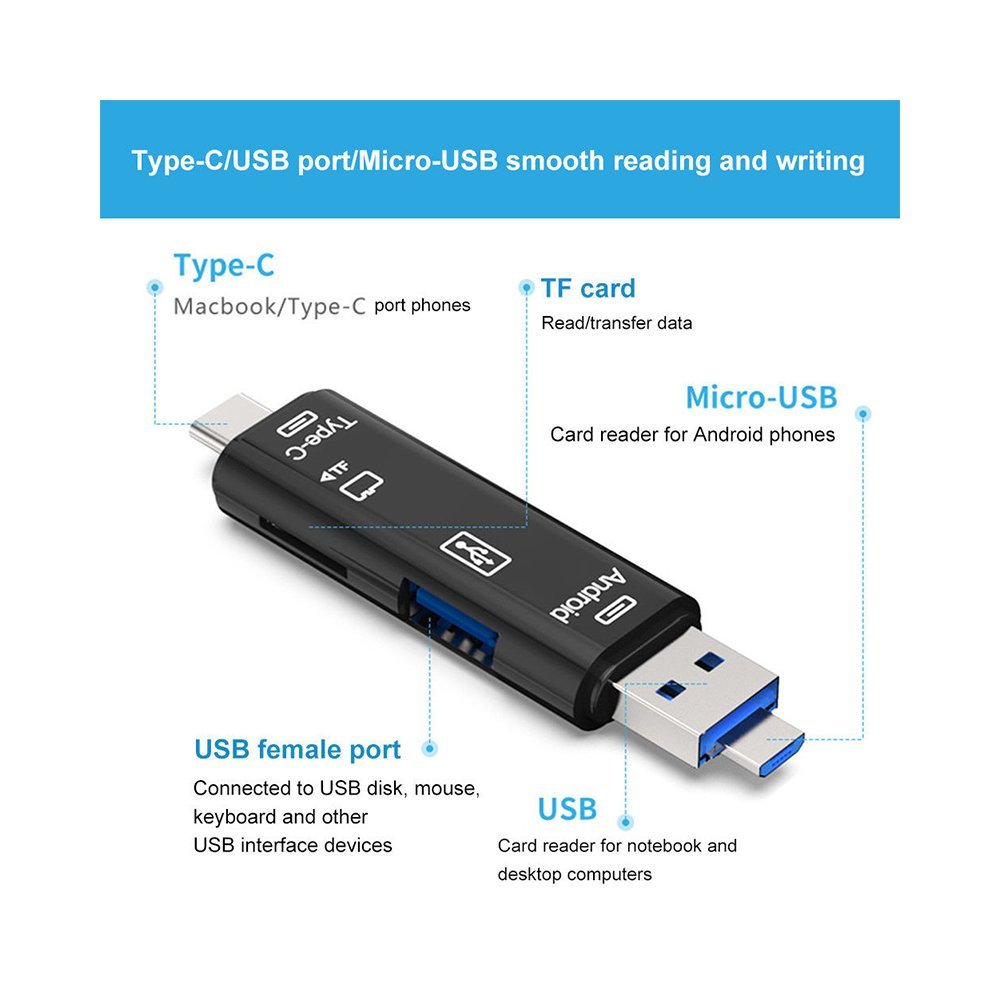 - USB2.0 male + MICRO male + Type-C male, speedily read TF memory cards.