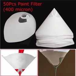 Description:50pcs Paper Paint Strainer Nylon Filter Funnel Cone Full Flow ConicalSpecification:Material:Paper+NylonColor: WhiteSize: Apprex. 9.5x16cmFeatures:-High-request products must be filtered with high-density filters so that an ideal effect can be reached and the extrusive paints would be more subtle.-The process of filtering would be very simple.-This product is made of nylon, which is odorless, tasteless,as well as non-toxic.-The advantage of this material: good toughness, high temperature resistance, good wearability, good acid as well as alkali resistance, good electronic insulation, low coefficient of lubricating, not easy to cause deformation.- The mesh is homogeneous and with precise demension so that even subtle impurities can be filtered.- Application: automotive paint, spray paint, for wood furniture machinery, etc.Package includes:50 x Paint Filters
