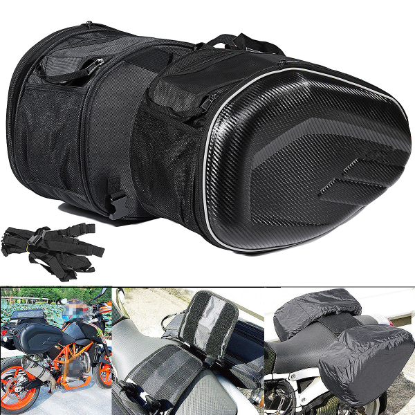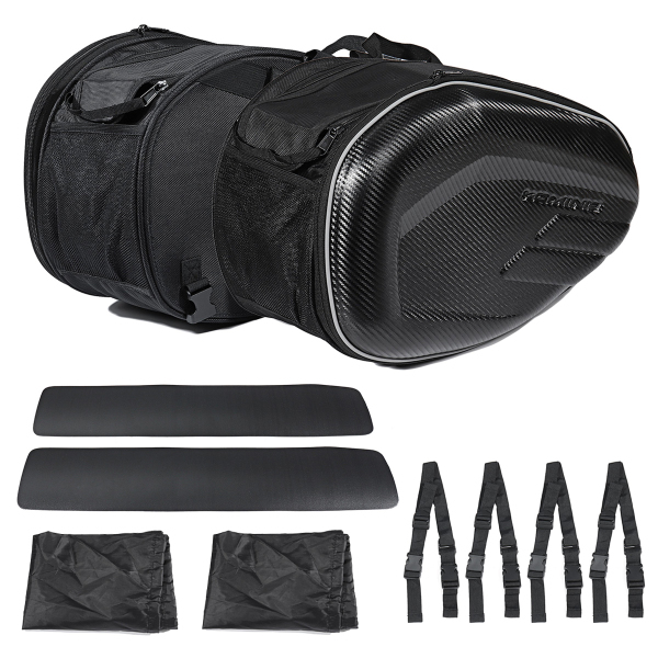 Description:Application: travelling,cycling,motocross,camping,climbing,fishing and so on.Waterproof, wearproof, strong and hardwearing, large capacity and expandable.This saddle bags can hold nearly all you need for outdoor activity, including helmet, shoes,clothes, laptop, tablet, and more other daily use, and so on.Specification:Material: 600D PolyesterColor: BlackCapacity: 36L-58LSize: Approx. 46*19*30cm (Each bag, expanded: 46*29*30cm)Package Included:2 X Motorcycle Saddle Bags (1pcs for left and 1pcs for right)2 X Storage Cloth Bags7 X Belts2 X Pads