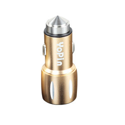 Description:This is a smart design car charger that output 3.1A current for most of USB device to charge battery, such as ablet PC, mobile phones, cameras, MP3, MP4, and other digital products.What’s more, it is also a car hammer that help you to break the car window when emergency situation happen. Specification:Brand: YOPINModel: CC-010Input voltage: 12-24 (V)Output Current: 3.1A, one port 2.1A, another port 1AOutput voltage: 5 (V)Working temperature: -20 ~ 60 ℃Material: Aluminum + stainless steelSize: 63.126.820.7mmCharge applicable range: Tablet PC, Mobile Phones, Cameras, MP3, MP4, and most digital productsOutput Interface: 2USBProduct Certification: CE FC ROHSPackage Included:1 X Car Charger