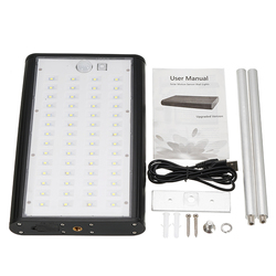 Specification:Solar panel:5.5V/3.0WBattery type:2 x18650 battery 3.7V/4400mAhLight quantity:56 ledLight color:white lightColor temperature:6000-6500KMaterial:ABSWork modes:light control/PIR motion sensorWaterproof class:IP65Charging time:6-8 hoursWorking time:8-12hoursFeatures:Dual power supply modes:a:connect with micro usb port,you can charge tje string lights on a terrible weather day such as foggy and snowstorm;b:directly charged by sunlight.(charge with the micro usb port before fisrt time using is recommended.)Motion sensor solar light produce over 700 lumens to provide lighting and security to your garage, pathway and more.It has a 4400mAh battery and can work continuously over ten hours, which is far more than other similar LED towns in the market.It becomes more durable and weatherproof with tightly sealed inner loop. And we also update the solar panel, thus getting a high-efficient, frosted, anti-scratch solar panel.It absorbs solar energy in the day,convert solar energy into electricity and it will automatically light in the evening.4 working modes:- Blink once: Motion sensor deactivated, lights stays in dim light.- Blink twice: Motion sensor deactivated, lights stays in bright light.- Blink three times: Motion sensor activated, lights stays in dim light, turns brighter for 15 seconds after a movement is detected within 20 feet, then back to dim light again.- Blink four times: Motion sensor activated, lights up brightly for 15 seconds after a movement is detected within 20 feet, otherwise stays in lightless.Package Includes:1 x solar motion sensor light3 x screws2 x expansion pillar hinge1 x mounting pole1 x mounting panel1 x usb cable