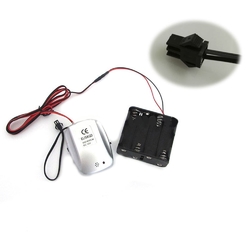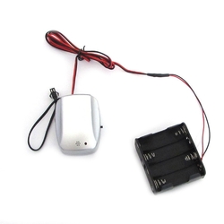 Specification:Powered by: 8 * AA batteries(not included)Voltage: DC12VMaterial: plasticFunction: steady on, sound active, OFFLoad: 1-6 meter EL wire Package included:1*DC12V sound active controller with battery box