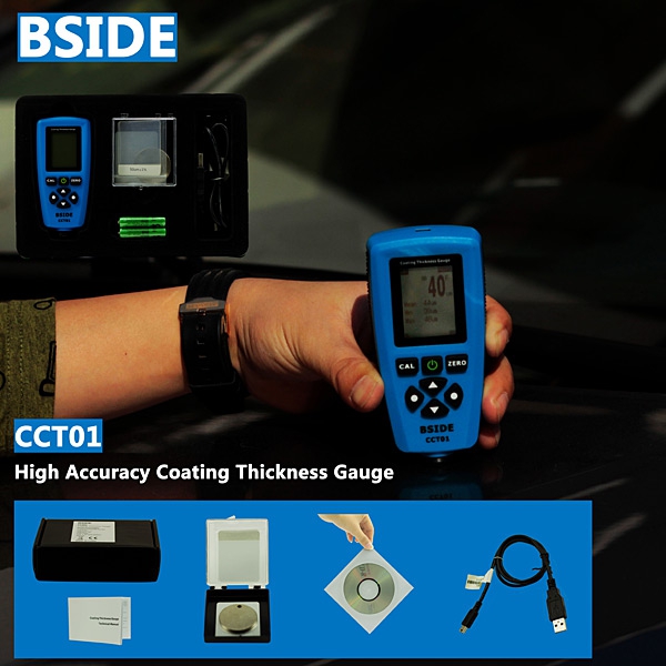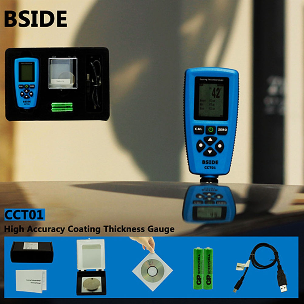 This compact gauge can be used for non-destructive coating thickness measurement of non-magnetic coatings, insulating coatings and anodizing coatings on non-ferrous metals. The internal probe can work on both principles, magnetic induction and the eddy currents. The probe can automatically detect the substrates type (Magnetic or not), and calculate the coating thickness and display it fast. There are five data groups, and readings will be automatically stored to memory for general groups (Not for direct group). Each group has individual statistics, alarm limit settings and calibration. User can recall and delete specified readings easily. User does all operations via standard menu so easily. User can press the CAL button to start calibration freely.