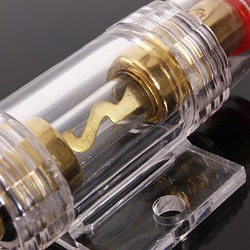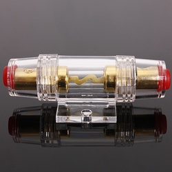Fuse Holder with Fuses is available now from our US warehouseFree shipping to US in 3-6 business daysShip to Canada,Brazil in 7-10 days in US warehouseCar Audio Refit Fuse Holder 4 / 8 And 10 Gauge Wire With 40 AMP FusesDescription:Material: ABSColor: TransparentQuantity: 1 pcLength: 8.5cm / 3.34″Diameter: 17mm / 0.67″Mounting hole diameter: 5mmTwo mounting holes diameter: 33mm / 1.3″Come with 2 pcs 40 AMP FusesUses: used to connect audio power lines.Role: to prevent excessive current, protection appliances. Package includes:1 x Fuse Holder2 x 40 AMP Fuse