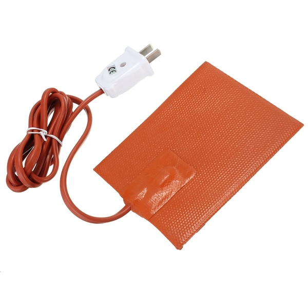 Car Engine Oil Heater Pad Silicone 100W 120V with Plug UniversalFeatures:This product are flexible and pliable,high temp.It is convenient to use,safety, waterproof, durable.Silicone rubber heating plate have a lot of advantage,such as,thin, lightweight and flexible and so on.Fit for a lots of position,like,utomotive applications, water tank, storage battery anti-freeze heating insulation,medical equipment and easy to install.This producr is make of alloy wire and silicon rubber,whic is high temperature insulation,heating quickly,uniform temperature, high thermal efficiency,and good toughness.Specifications:Material: Alloy wire,Silicone rubberColor: OrangePlug: with plugPower: 120V 100WHeater Width:10cmHeater Length:12.5cmWire Length: 146.5cmProcucr Weight: 104gFit for: Automotive applications, water tank, storage battery anti-freeze heating insulation,medical equipment.Attention:Do not use batteries.You can not cut the pad.It can not be installed on a plastic or poly container.Please keep dry when you use this product.Please make sure that the enviroment would not cause the fire.Package Included:1 X Pad Heater ( with plug)