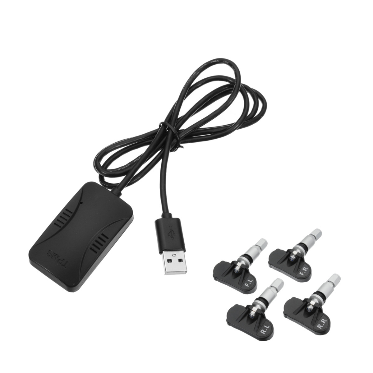 1. This product contains four sensors and a receiver, the sensor used to real-time monitoring ofthe pressure and temperature inside the tire, the sensor to the pressure and temperature datacollected by way of radio frequency to the receiver, the receiver through the USB I transmitted tothe car navigation process is displayed.