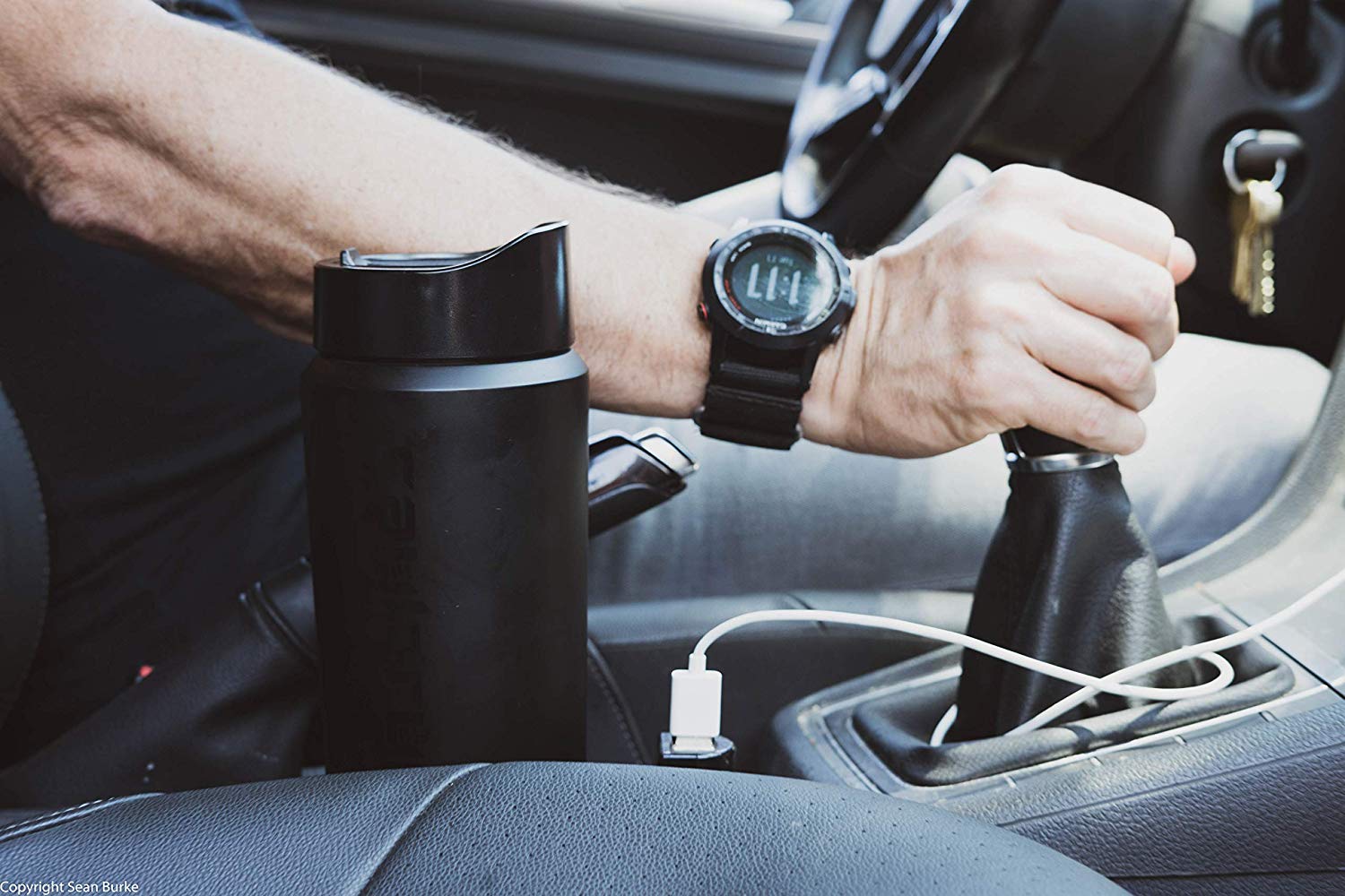 You can use CAULDRYN COFFEE’s powerful battery or the included plug in base with wire free drinking to power it all day. You can even use the optional vehicle base to power it from your 12V outlets.