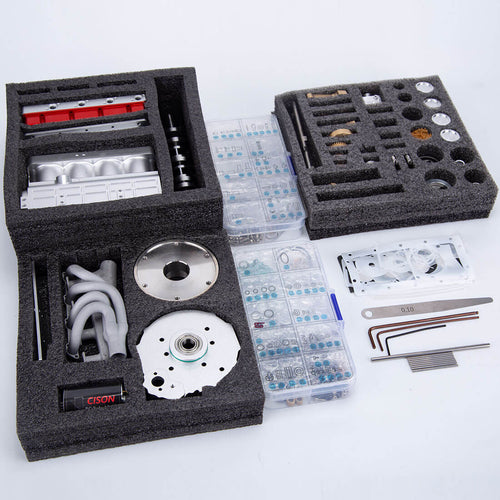 With a total of hundreds of metal parts, the L4-175 engine kit allows you to start a great and challenging project, enter the world of micromechanical engineering, and DIY builds your own L4 engine. The main body of the engine is made of aluminum CNC in precision processing, with a special bimetal cast iron piston ring, high-precision stiffening cylinder liner, integral stiffening crankshaft, and sandblasting oxidation on the surface for an impressive beauty and texture.