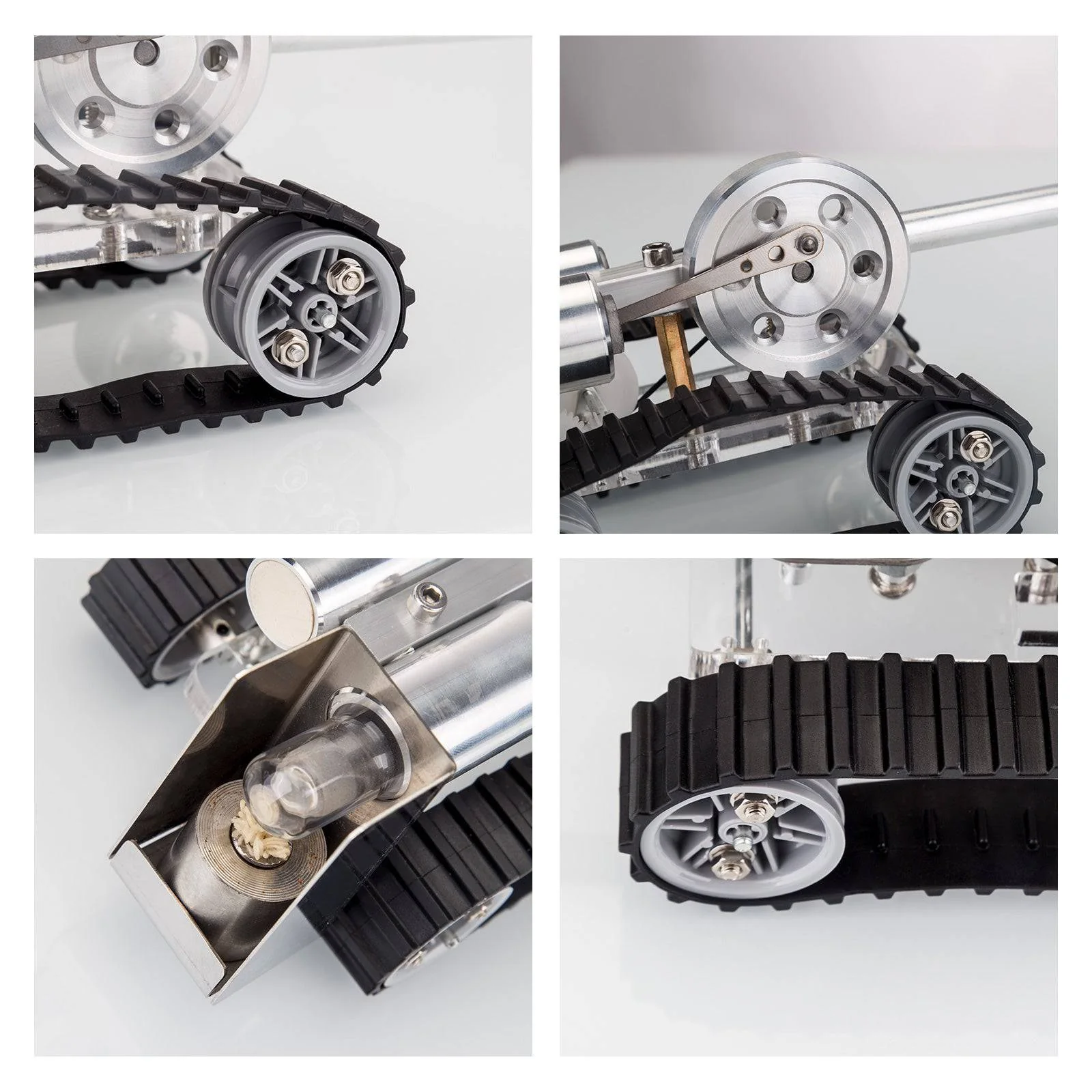 - Unique Crawler Tank Shape: The Stirling engine is applied to the model crawler tank to turn it into a toy car that can run.