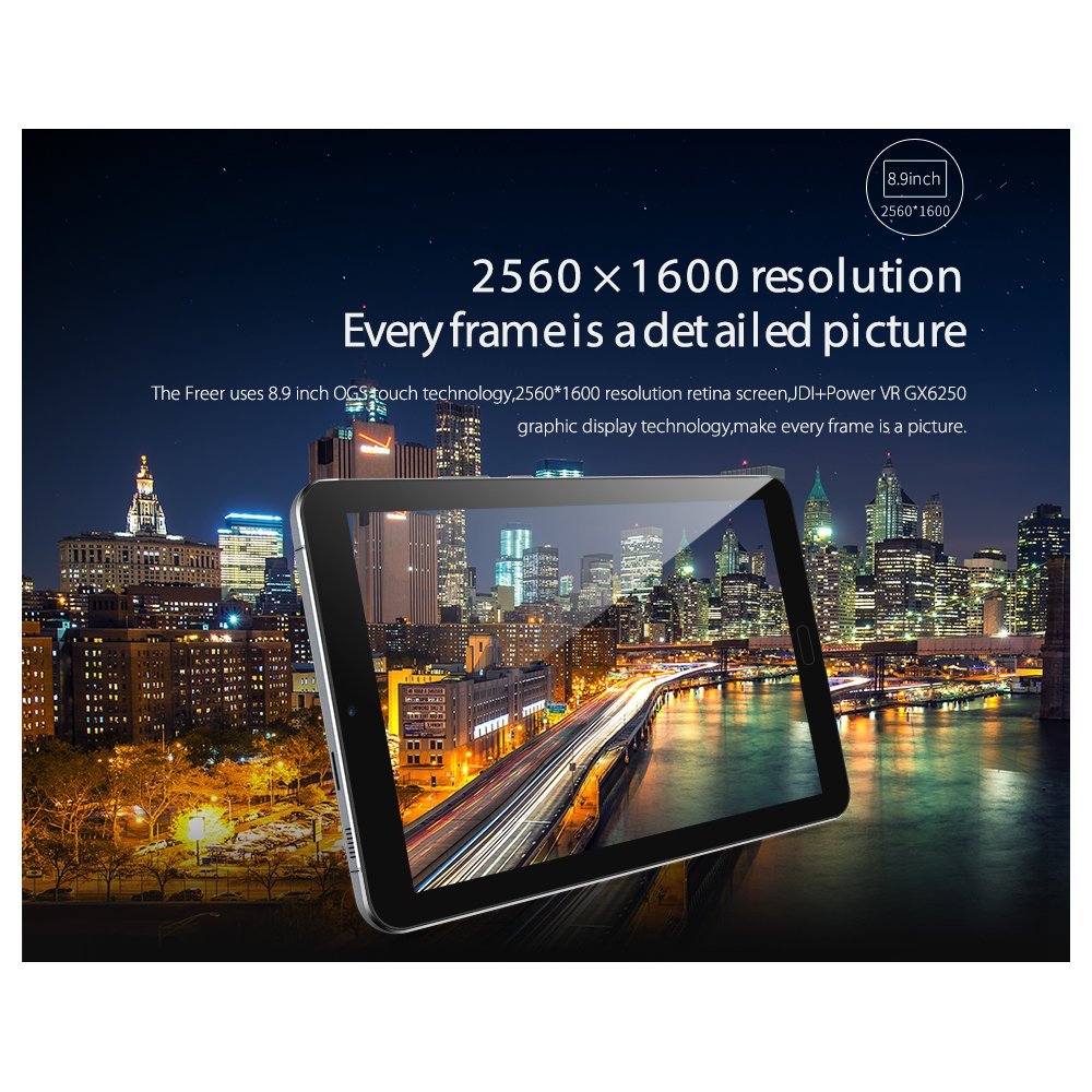 The Freer uses 8.9-inch OGS touch technology, 2560*1600 resolution retina screen, JDI+Power VR GX6250 graphic display technology, make every frame is a picture.