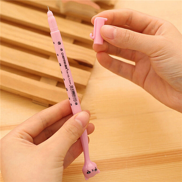 Cute Cat Black Gel Ink Roller Ball Point Pen for School OfficeSpecifications:Writing Color: BlackType: Roller Ball Point PenProduct Material: PlasticLength: 17cmColor: White/Pink/Blue/Brown (random)Weight: 11gPackage included:1 x Ballpoint Pen