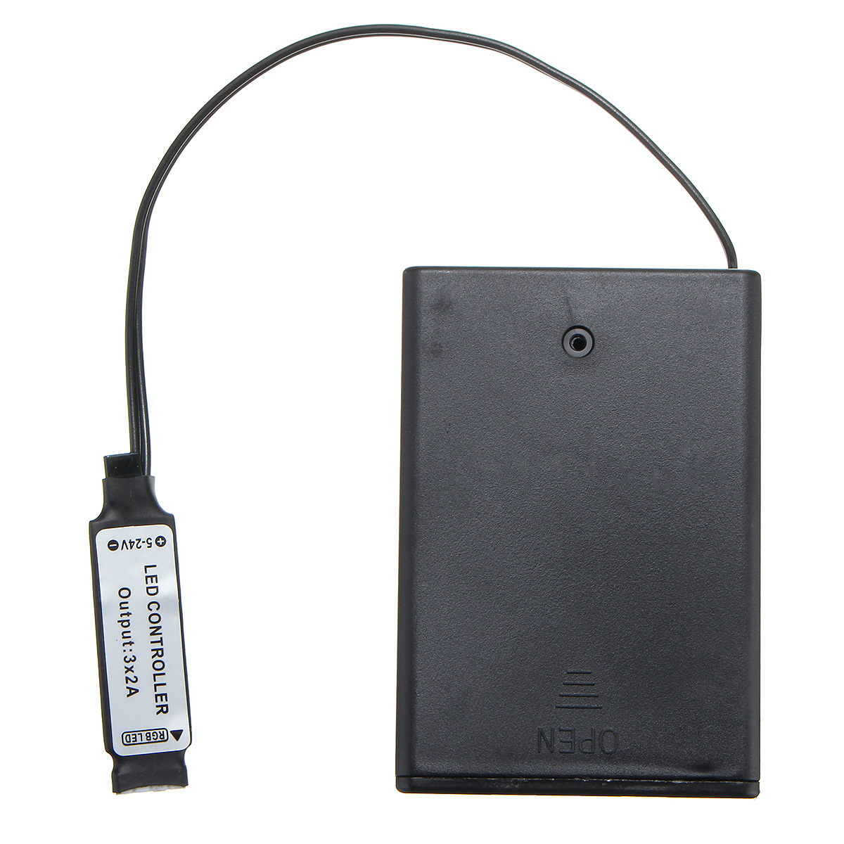 Specification:Power supply:3*AA batteries(not included)Voltage:DC4.5VCurrent: 3*4ASuitable for RGB led strip lightPackage included:1*DC4.5V battery box1*24keys remote control