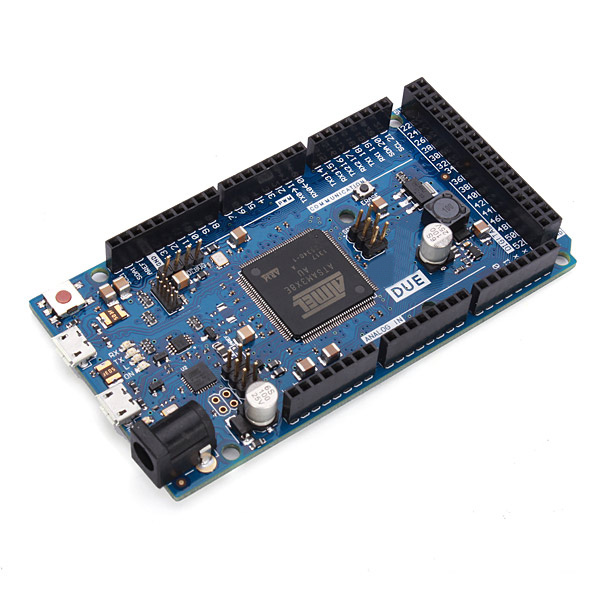 Description:The Due is a microcontroller board based on the SAM3X8E ARM Cortex-M3 CPU (datasheet). It is the first board based on a 32-bit ARM core microcontroller. It has 54 digital input / output pins (of which 12 can be used as PWM outputs), 12 analog inputs, 4 UARTs (hardware serial ports), a 84 MHz clock, an USB OTG capable connection, 2 DAC (digital to analog), 2 TWI, a power jack, an SPI header, a JTAG header, a reset button and an erase button.The board contains everything needed to support the microcontroller; simply connect it to a computer with a micro-USB cable or power it with a AC-to-DC adapter or battery to get started. The Due is compatible with all shields that work at 3.3V and are compliant with the 1.0 pinout.The SAM3X has 512KB (2 blocks of 256KB) of flash memory for storing code. The bootloader is preburned in factory and is stored in a dedicated ROM memory. The available SRAM is 96KB in two contiguous bank of 64KB and 32KB. All the available memory (Flash, RAM and ROM) can be accessed directly as a flat addressing space.It is possible to erase the Flash memory of the SAM3X with the onboard erase button. This will remove the currently loaded sketch from the MCU. To erase, press and hold the Erase button for a few seconds while the board is powered.Feature:The Due has a 32-bit ARM core that can outperform typical 8-bit microcontroller boards. The most significant differences are:A 32-bit core, that allows operations on 4 bytes wide data within a single CPU clock.CPU clock at 84Mhz96KBytes of SRAM512KBytes of flash memory for codeA DMA controller, that can relieve the CPU from doing memory intensive tasksWarning:Unlike other boards, the Due board runs at 3.3V. The maximum voltage that the I / O pins can tolerate is 3.3V. Providing higher voltages, like 5V to an I / O pin could damage the board.Specification:Microcontroller: AT91SAM3X8EOperating voltage: 3.3VInput voltage(recommended): 7V – 12VInput voltage(limits): 6V – 16VDigital I / O pins: 54(of which 12 provide PWM output)Analog input pins: 12Analog outputs pins: 2(DAC)Total DC output current on all I / O lines: 130mADC current for 3.3V pin: 800mADC current for 5V pin: 800mAFlash memory: 512KB all available for the user applicationsSRAM: 96KB(two banks: 64KB and 32KB)Clock speed: 84MHzPackage included:1 x compatible DUE R31 x USB cable