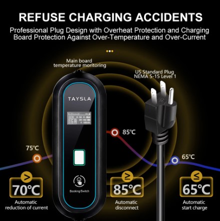Electric Vehicle EV Charger NEMA 5-15 Plug Level 1 Charging Cable for TYPE 1 J1772 Electric Cars Indoor Outdoor Use