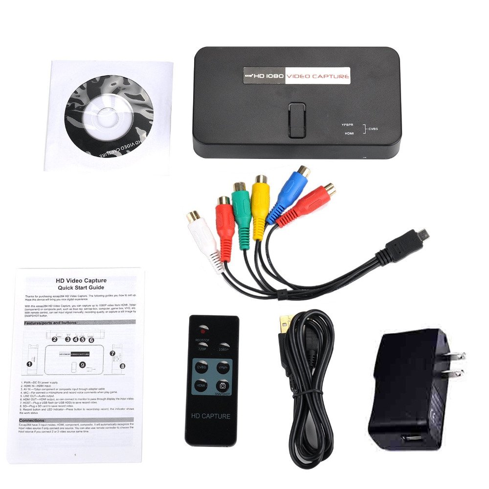 ezcap284 HD Video Capture, can capture up to 1080P video from HD, Ypbpr (component) or composite port, such as blue ray, set-top-box, computer, game box, VHS, etc. With remote control, can set input signal manually, recording quality, or capture a still image by SNAPSHOT button.