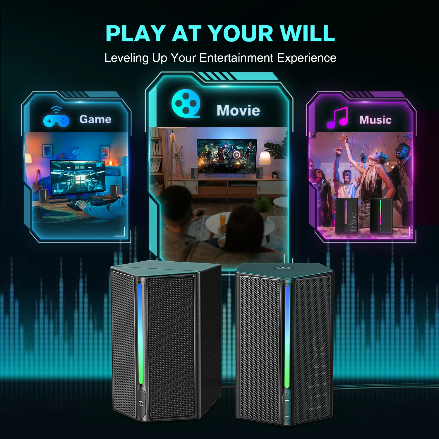 FIFINE Gaming Sound Box with Stereo Surround Sound, USB RGB Speaker with Vol Control for PC,Lattop,PS4/5,TV-Ampligame A20