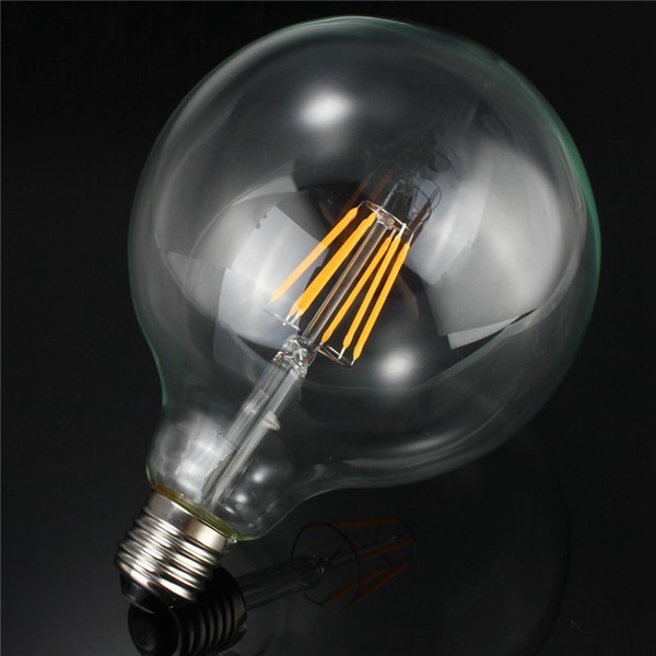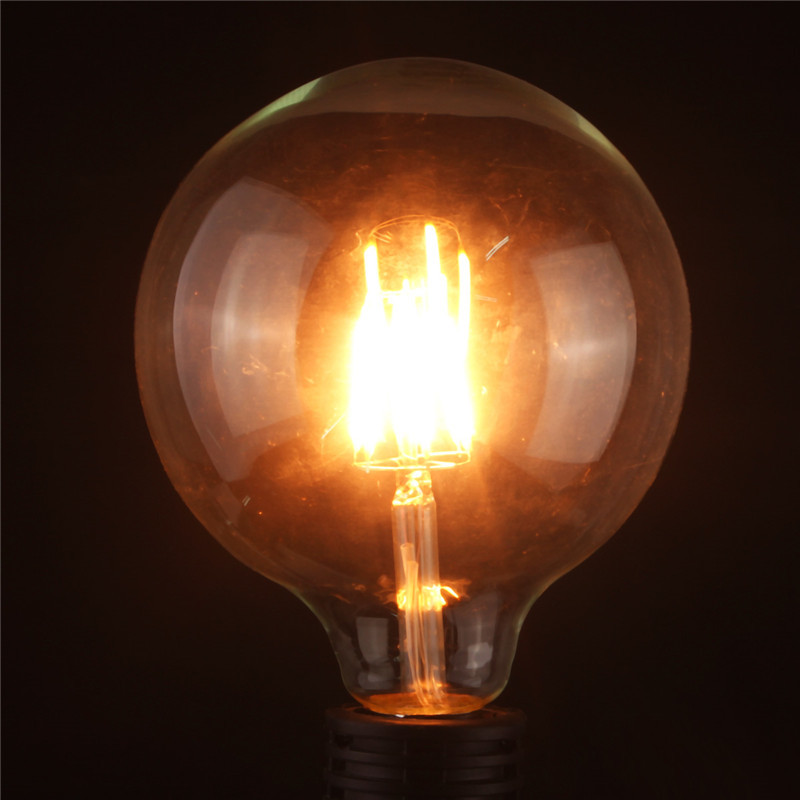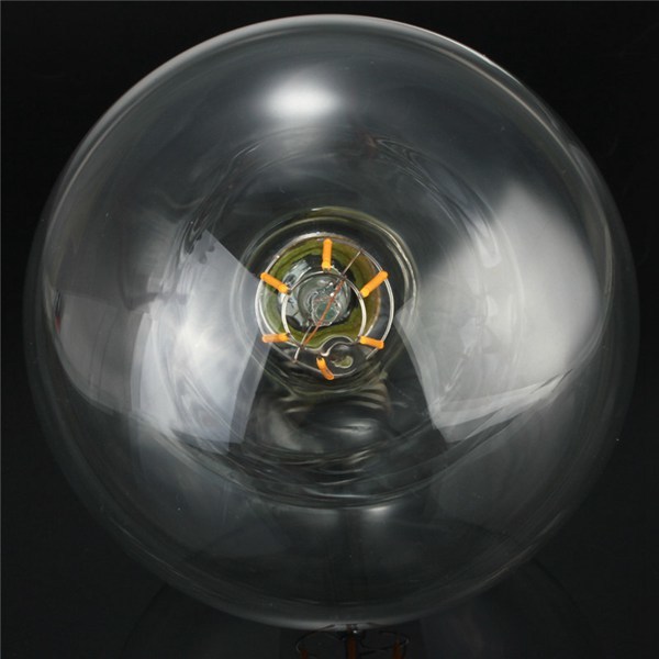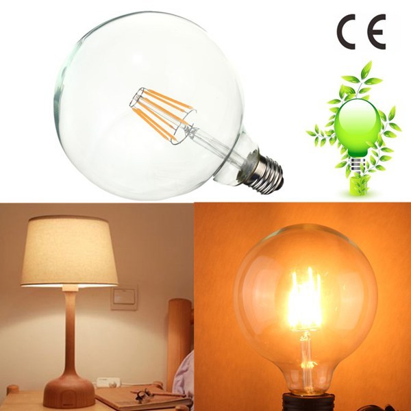 Description:G125 6W E27 Edison Filament Warm White Globe COB LED Light Bulb 220-240V.Lamp Base : E27Light Source : COB chipInput Voltage : AC 220-240VPower : 6WLight Color : Warm White 2300-2700KLumens : 650 LmBeam Angle : 360 DegreesCRI : >85Dimensions : 18.0 cm x 13.0 cm (H x Dia)Weight : 150gFeatures:1. Replace traditional incandescent tungsten, glass lamp, high light transmission2. Carrying on the classic appearance of traditional incandescent, close to life3. Energy saving, low power consumption, long life expectancy4. All electronic components are secured and safe5.High color rendering index, RA> 80, excellent lighting effects, eye protectionApplications:Indoor lighting like home, restaurants, hotels, art galleries lighting etc.Package Include:1 x LED Light BulbDetails Pictures: