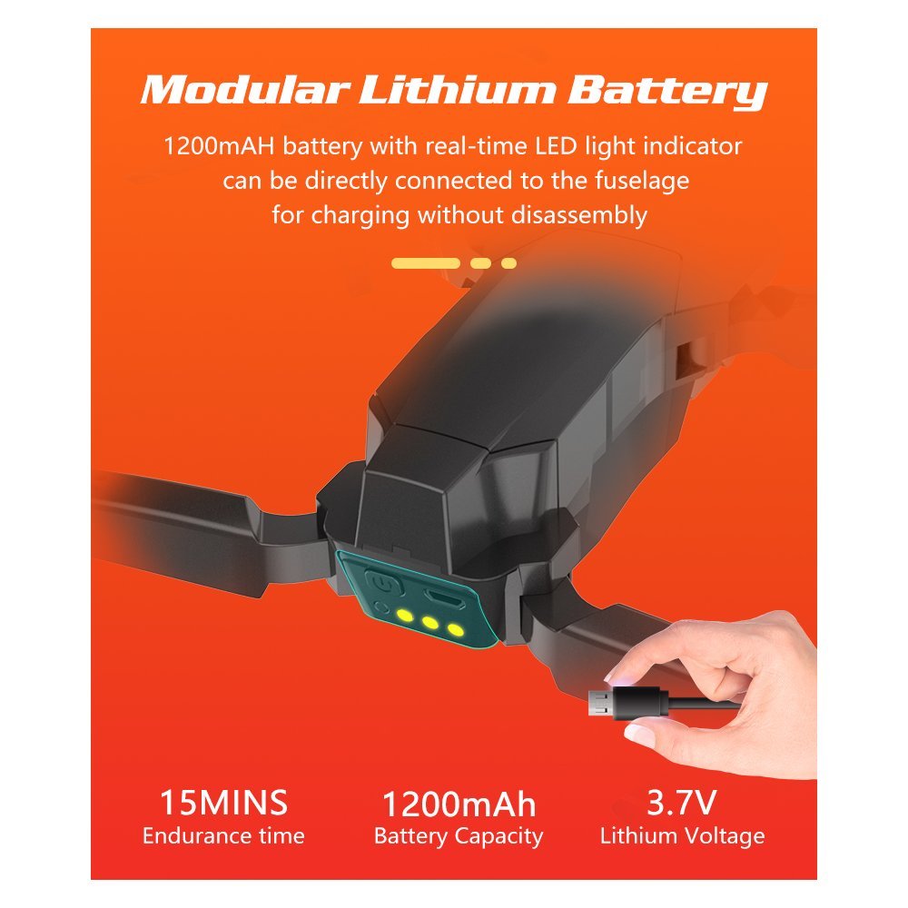 - Quadcopter Battery: 3.7V 1200mAh Lipo (Included)