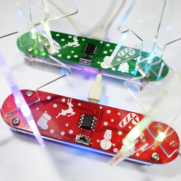that create a colorful Christmas tree making kit. In order to conform the holiday theme, the PCB add some different funny