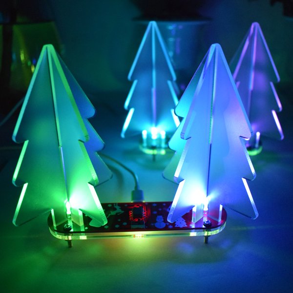This acrylic Christmas tree is a cool DIY project for the holiday decoration. It’s a simple make kit and also has many kinds of colorful automatically changing mode.It has two Christmas Tree above and each Tree is combined by two Tree-Shape acrylic,