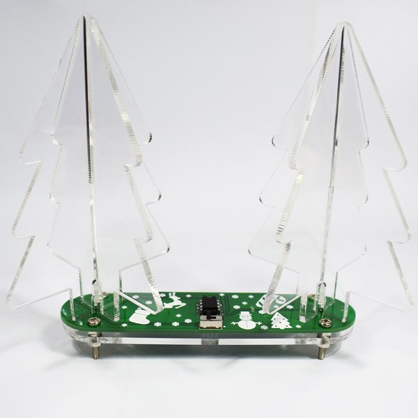 so that you can see the Christmas Tree in any angle. The bottom is steady by the long oval shape PCB and Acrylic,