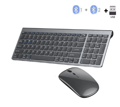 Enhance your productivity with the Gray Bluetooth 5.0 & 2.4G Wireless Keyboard and Mouse Combo. This rechargeable, full-size wireless keyboard and mouse set offers dual-mode connectivity, making it perfect for your notebook or laptop. With its sleek gray design and advanced features, this combo is designed to meet all your computing needs.