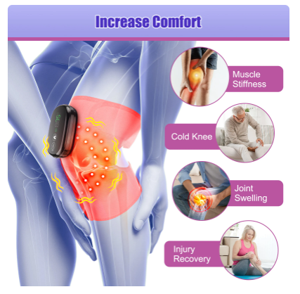 Our Heating Knee Massage Pad stands out with its combination of heat, vibration, and red light therapy, providing a comprehensive solution for joint pain and inflammation. Whether you suffer from arthritis, joint stiffness, or muscle soreness, this device is your go-to for effective relief and protection.