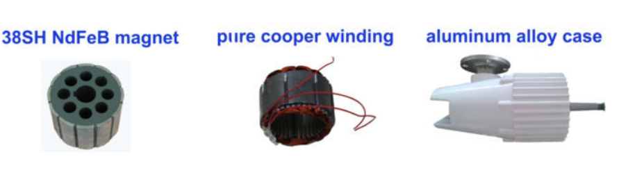 - Patented permanent magnet ac generator with special stator, effectively reduce torque, well match the wind wheel and generator, and ensure the performance of the whole system.