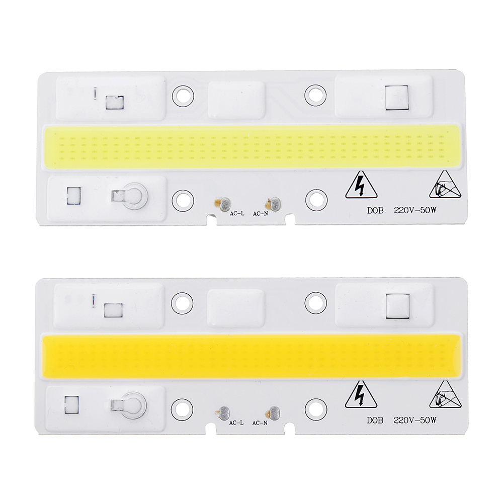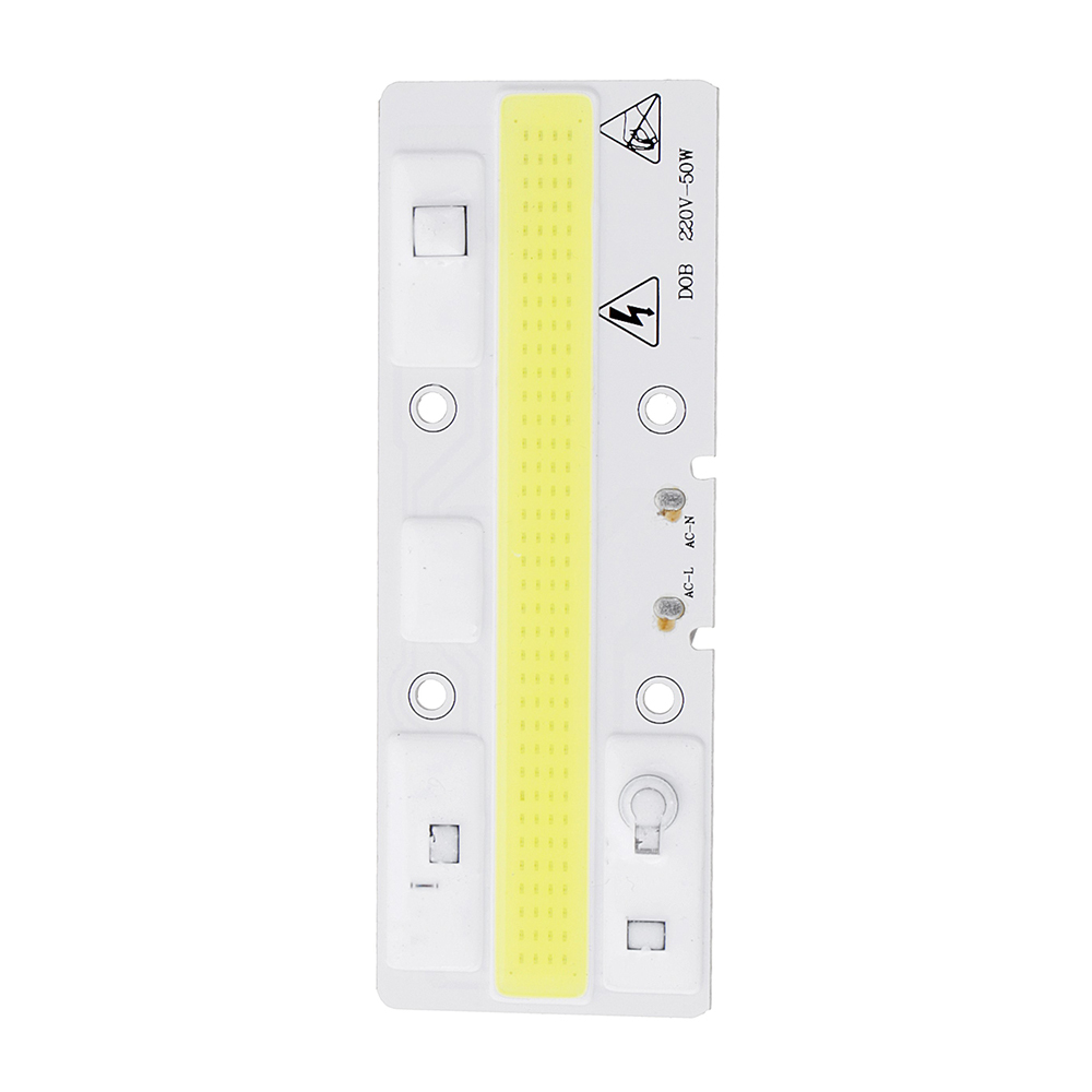 Specification:Voltage: AC220VPower: 50WLight Color: Warm White (3000K) / White (6000K)Light Source: LEDLight Angle: 120 DegreeAnti Surge: 2000-3000VSize: 40mm x 110mmFeatures:Ultra long lasting designSuper bright COB LED chipNo dizzy, no uncomfortable glareHow to use:1.Install the LEDs to the heat sink or your floodlight.2.Connect to AC220V, start working.Package Included:1 x COB LED Lamp