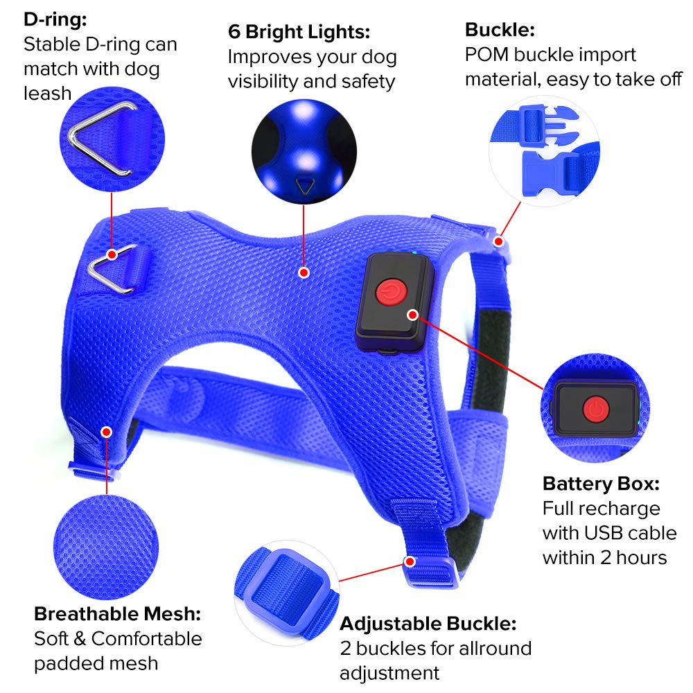 HiGuard USB Rechargeable LED Dog Safety Harness Offers You SuperBright Glowing Light to Keep Your Dog High Visible and Be Safe Walk to Avoid Some Potential Traffic Dangers In The Dark.