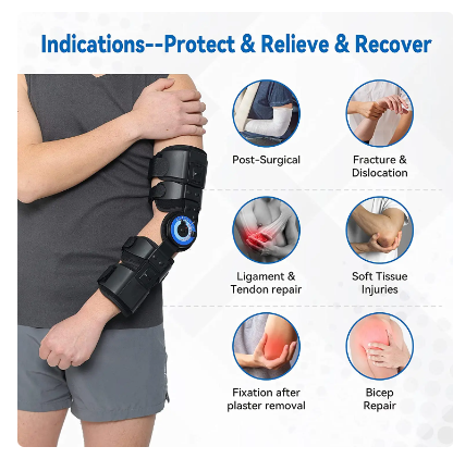 - Stable or internally fixed fractures of the distal humerus or proximal radius or ulna & Immobilization of the elbow in 10~15° increments; Limit ROM by adjustable simple setting hinges